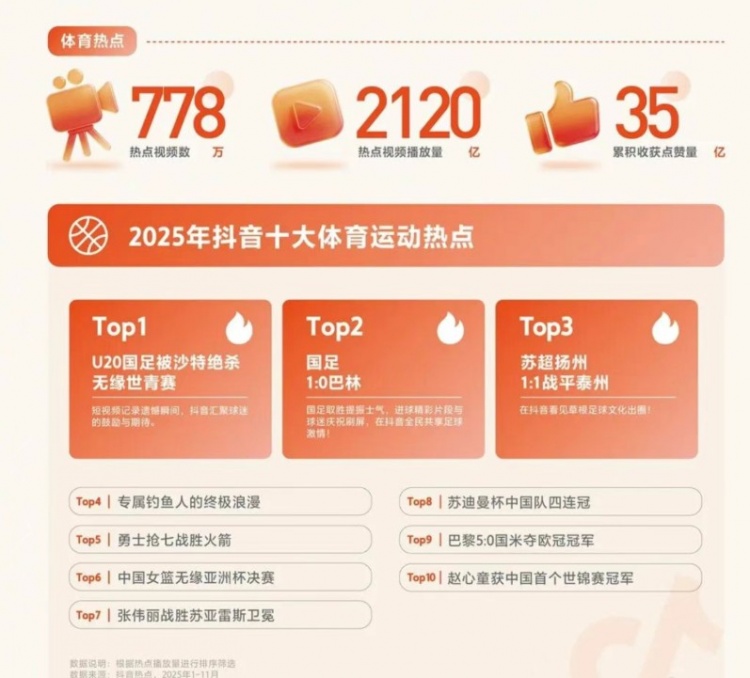 开云下载-2025抖音十大体育热点:火勇抢七&中国女篮无缘亚洲杯决赛上榜